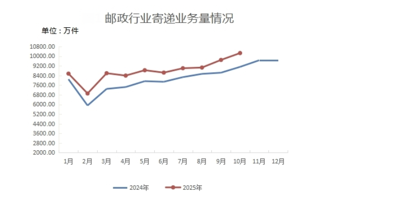 天山网-新疆日报讯(记者 范琼燕 报道)11月24日,记者从新疆邮政管理局获悉:2025年10月新疆邮政行业运行情况发布,1—10月,新疆快递业务收入累计完成66.35亿元,快递业务量累计完成46607.29万件,分别同比增长12.84%、30.37%。