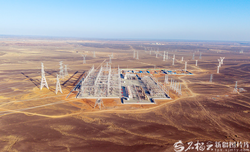 位于新疆准东经济技术开发区的五彩湾北750千伏变电站航拍。马元 摄