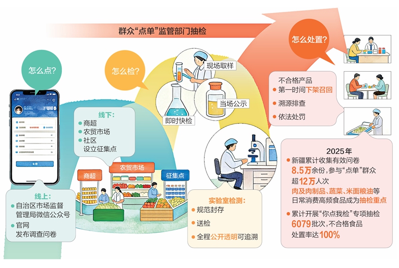 今年,“食品安全‘你点我检’”被纳入自治区十件民生实事。这意味着,这项探索性的工作将走向常态化、制度化。在全疆各地,一张“群众点单、政府检测、社会监督”的食品安全共治网络正在织密织牢。