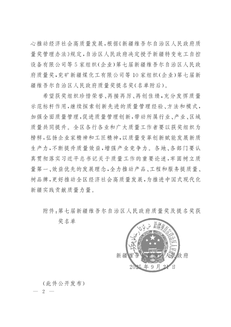 关于表彰第七届新疆维吾尔自治区人民政府质量获奖奖组织的决定