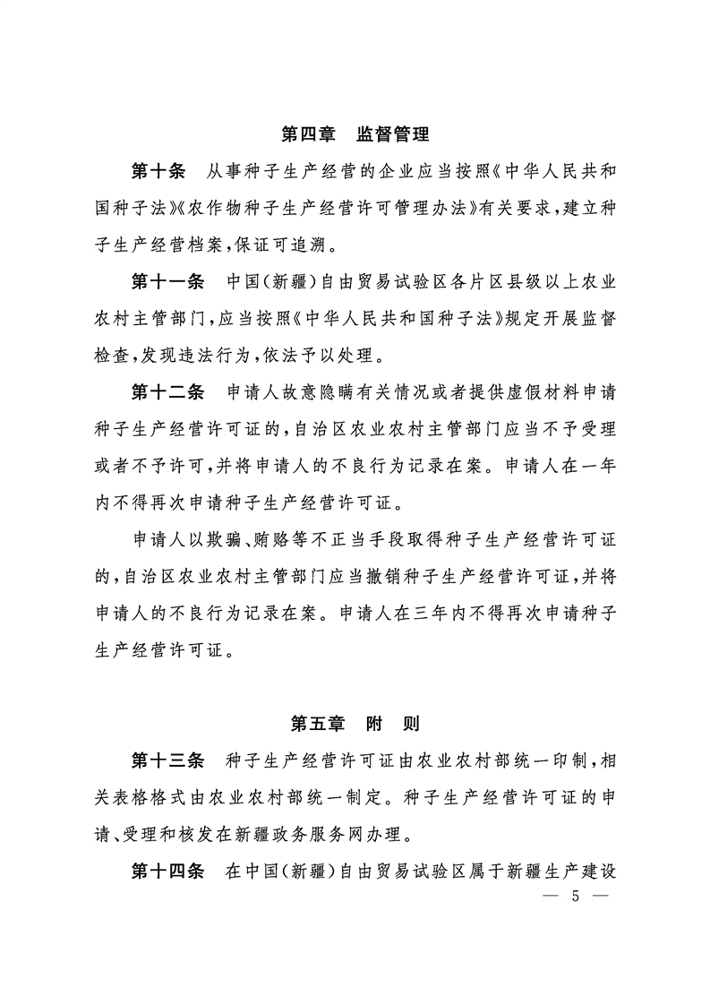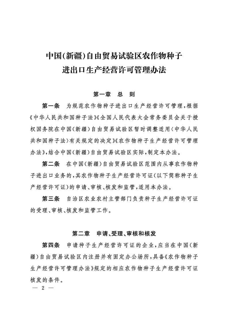 新疆维吾尔自治区人民政府办公厅关于印发《中国(新疆)自由贸易试验区农作物种子进出口生产经营许可管理办法》的通知