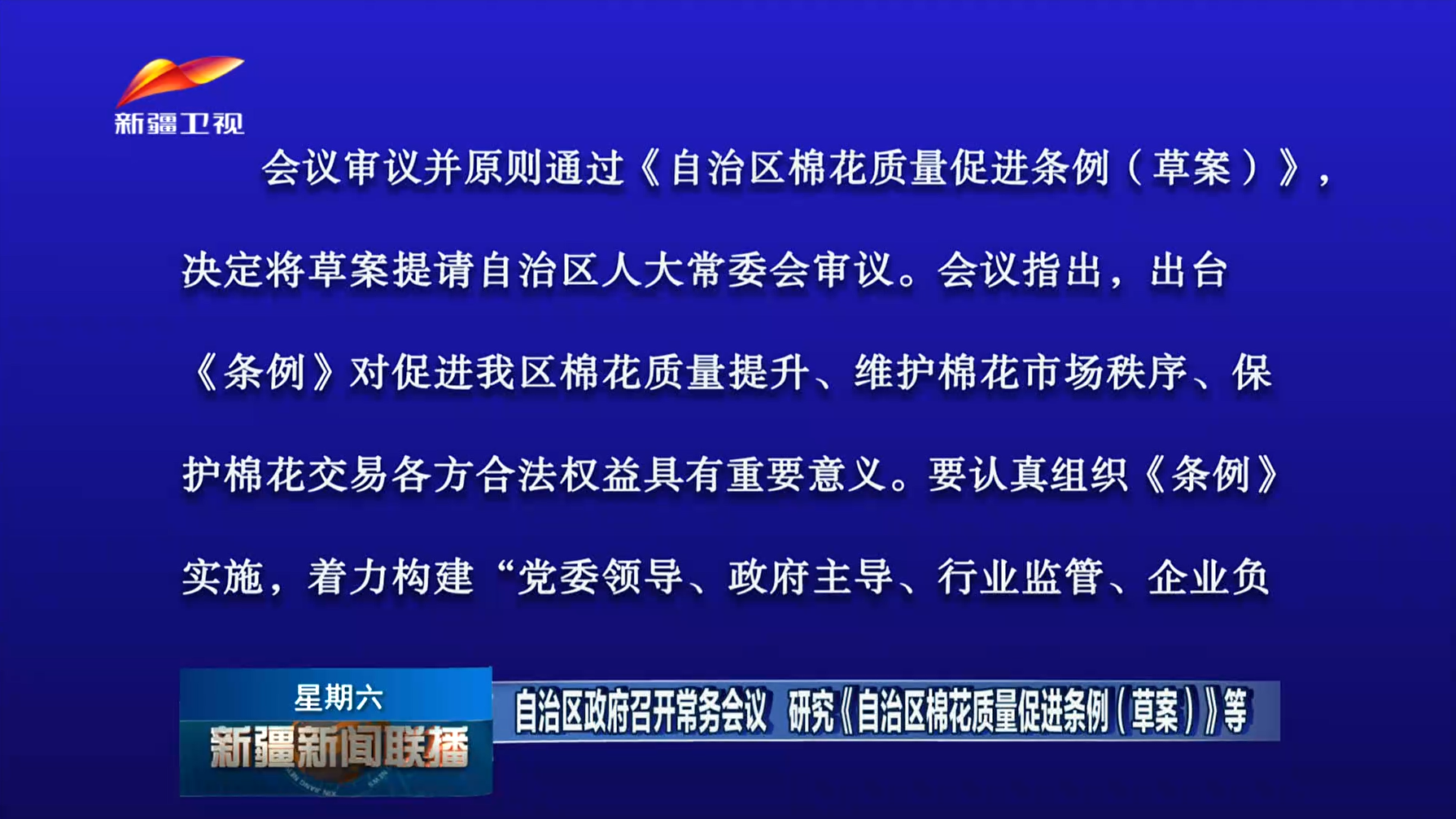 自治区政府召开常务会议 研究《自治区棉花质量促进条例(草案)》等