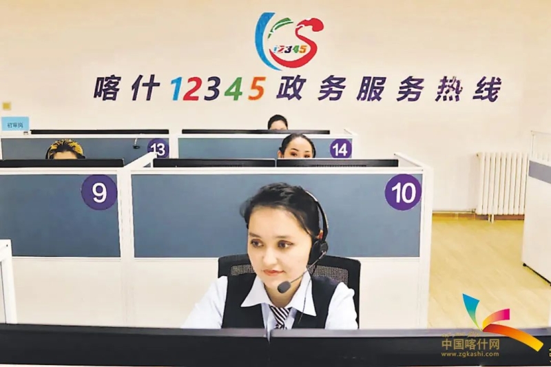 喀什12345政务服务热线大厅内的工作人员登记来电情况。喀什日报记者张红玲摄