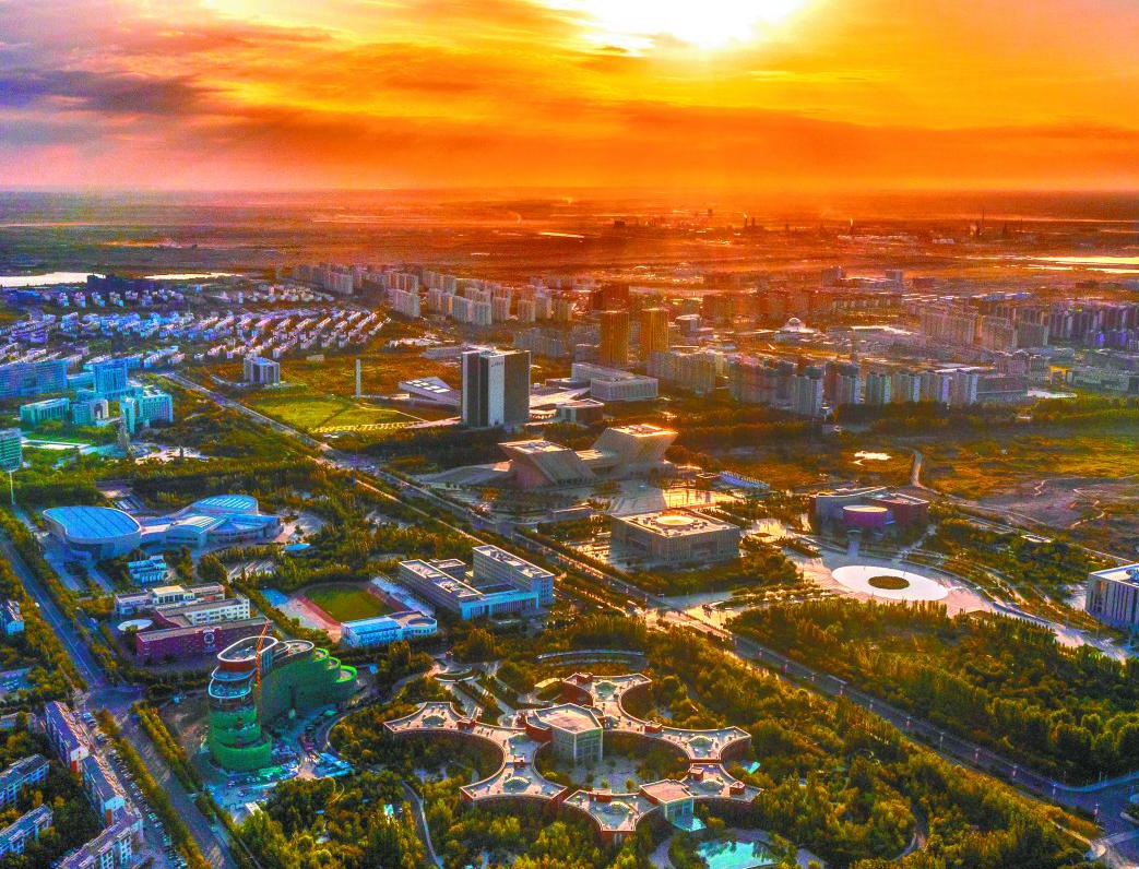 克拉玛依市区沐浴在朝阳下(2023年8月17日摄)。闵勇摄