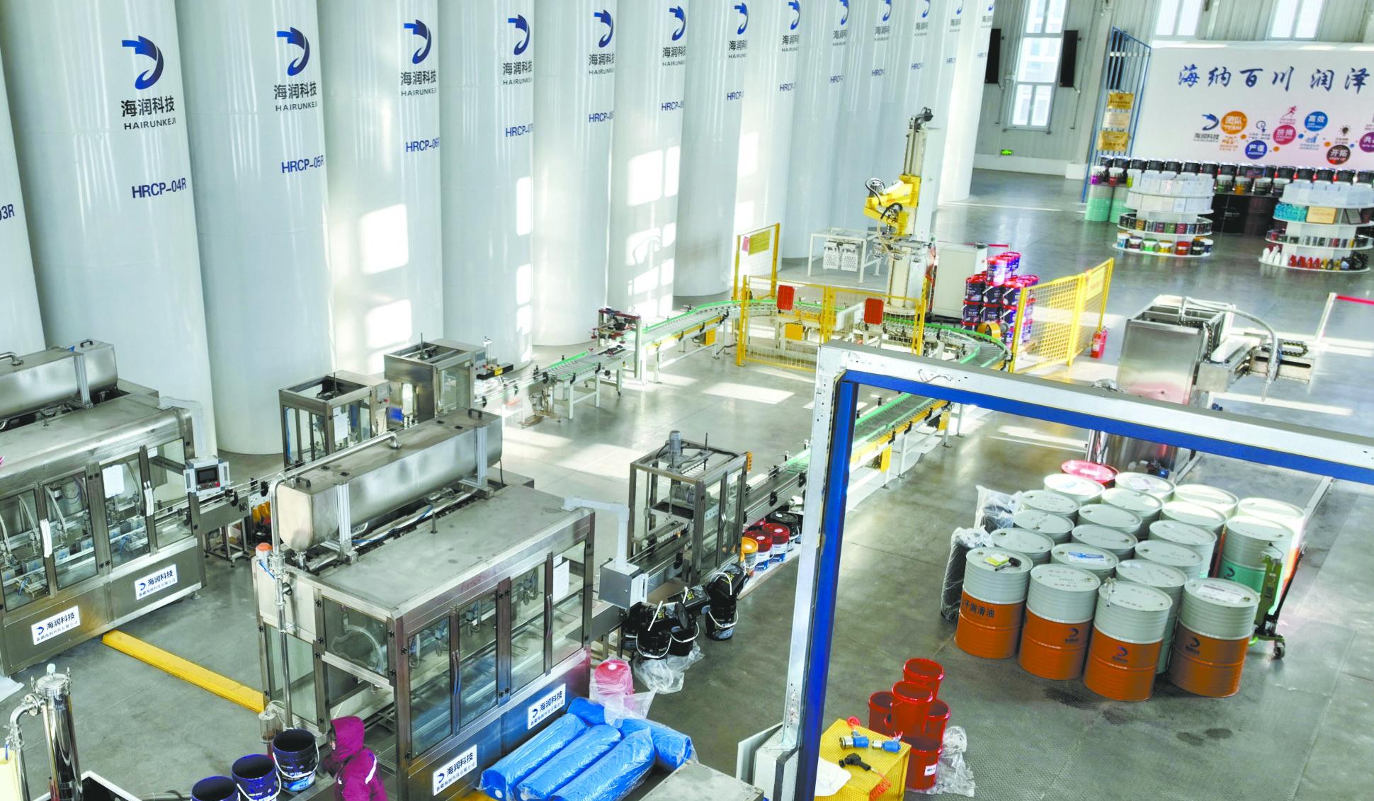 新疆海润科技有限公司建设的总投资达1.5亿元年产10万吨润滑剂项目一期已于2022年4月投产,二期项目预计2024年3月投入使用(2024年1月3日摄)。 崔文娟摄