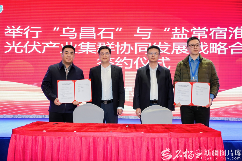 10月23日,“乌昌石”与“盐常宿淮”光伏产业集群协同发展战略合作签约。图/新疆光伏行业协会提供