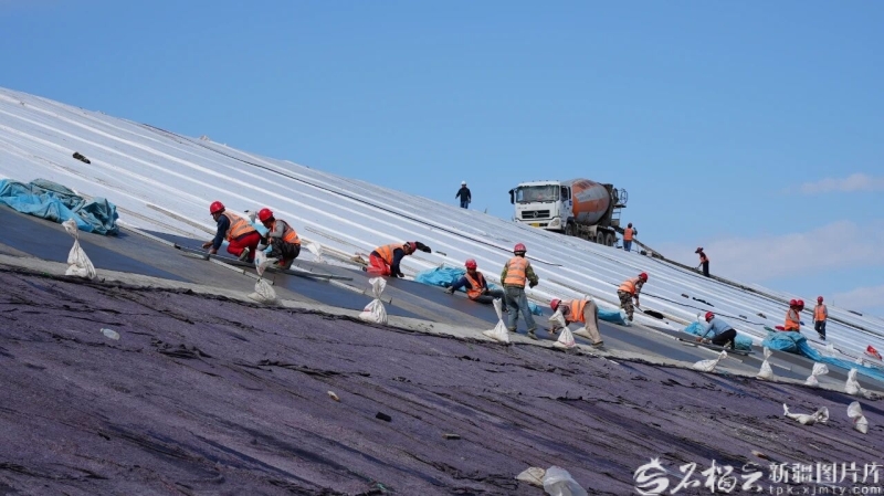 塔城地区水务集团有限公司中标裕民县哈拉布拉灌区蓄水调节池工程施工现场。塔城地区融媒体中心供图