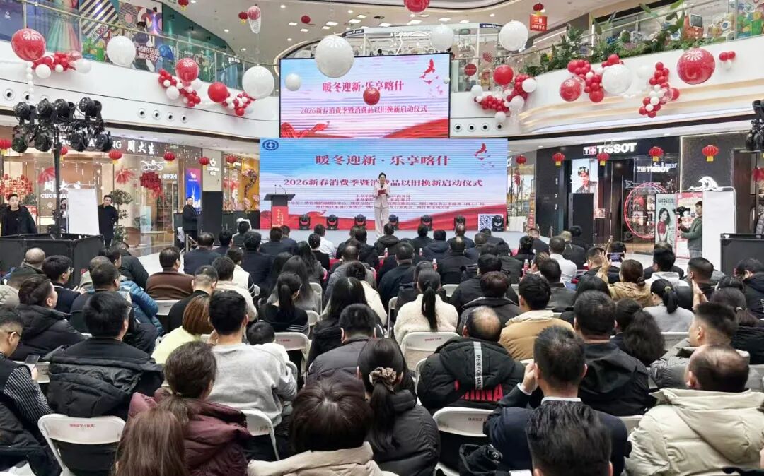 1月17日,“暖冬迎新·乐享喀什”2026新春消费季暨消费品以旧换新启动仪式在喀什市东城万达广场举行。