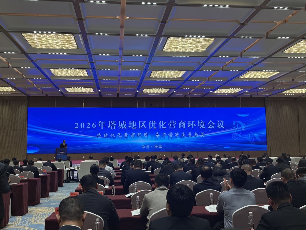 2026年塔城地区优化营商环境会议现场。新华社记者 古扎丽努尔 摄