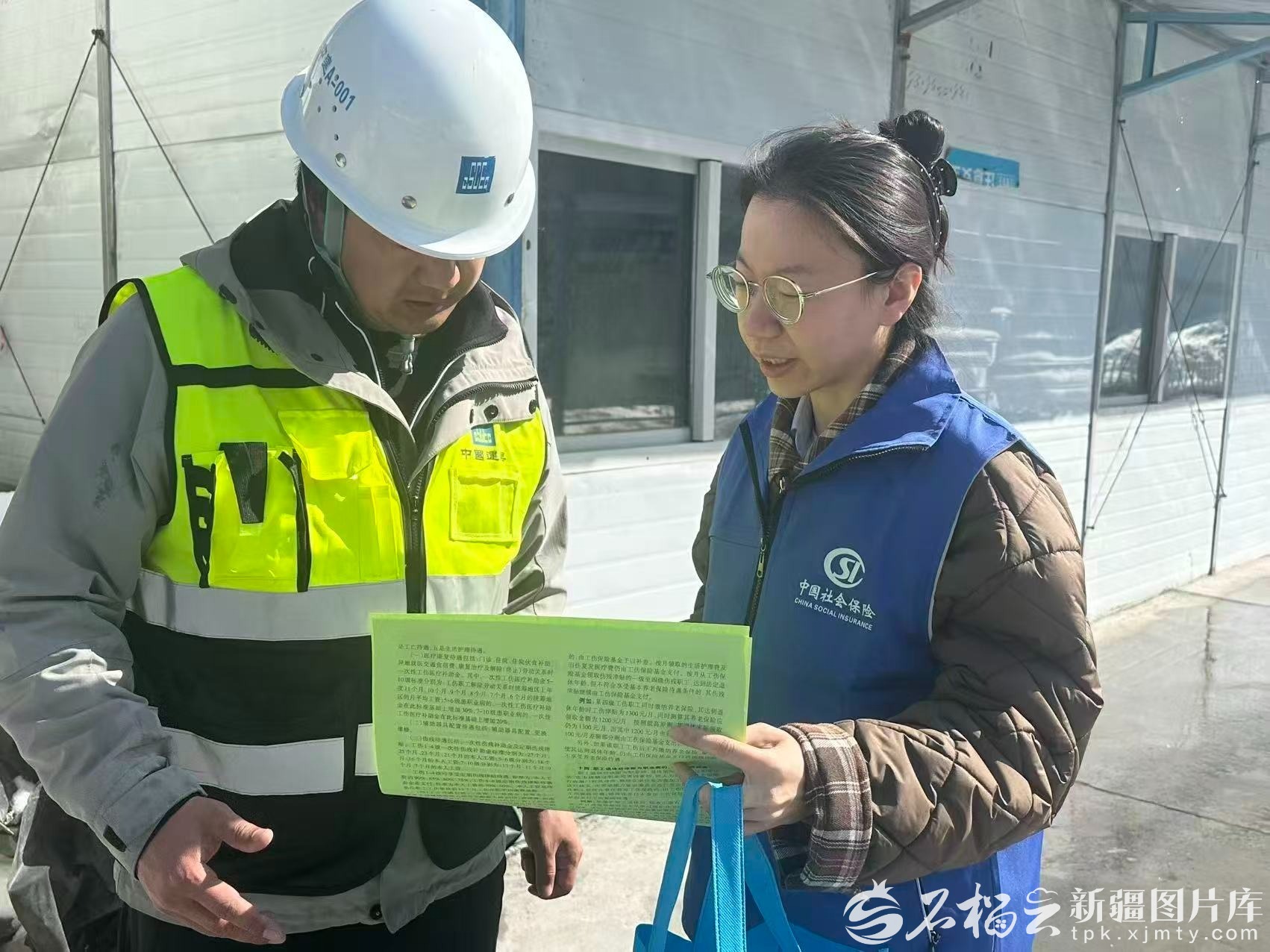 3月18日,乌鲁木齐高新技术产业开发区(新市区)社保分中心工作人员走进中建新疆建工(集团)第一建筑工程有限公司项目现场,为建筑工人讲解工伤保险参保流程,明确工伤待遇申领步骤。乌市人社局社保中心供图