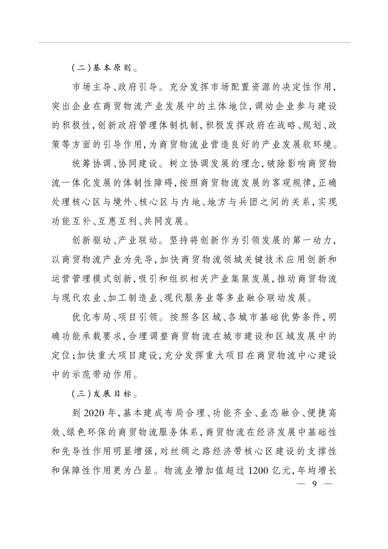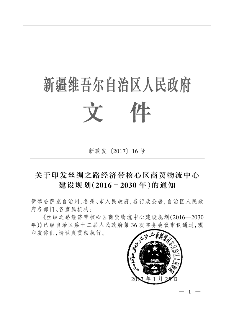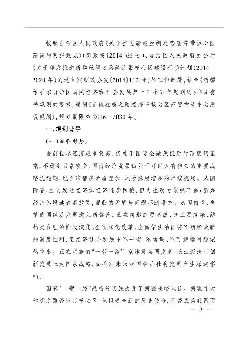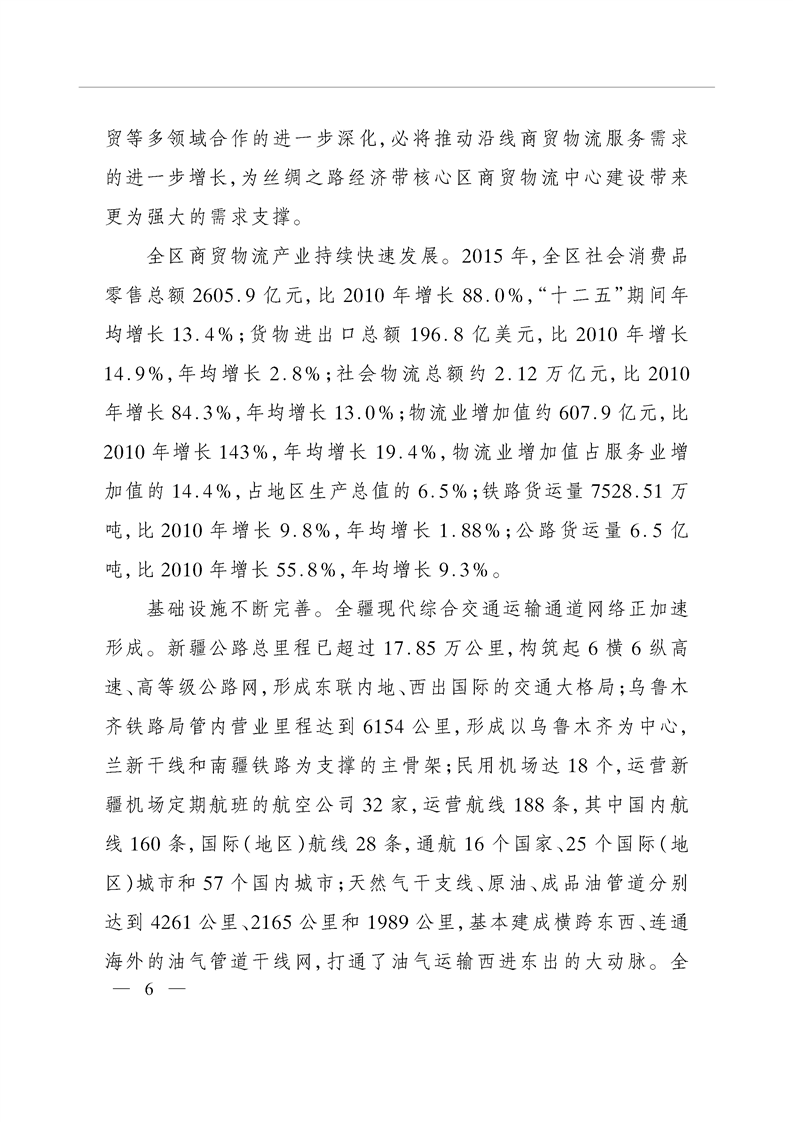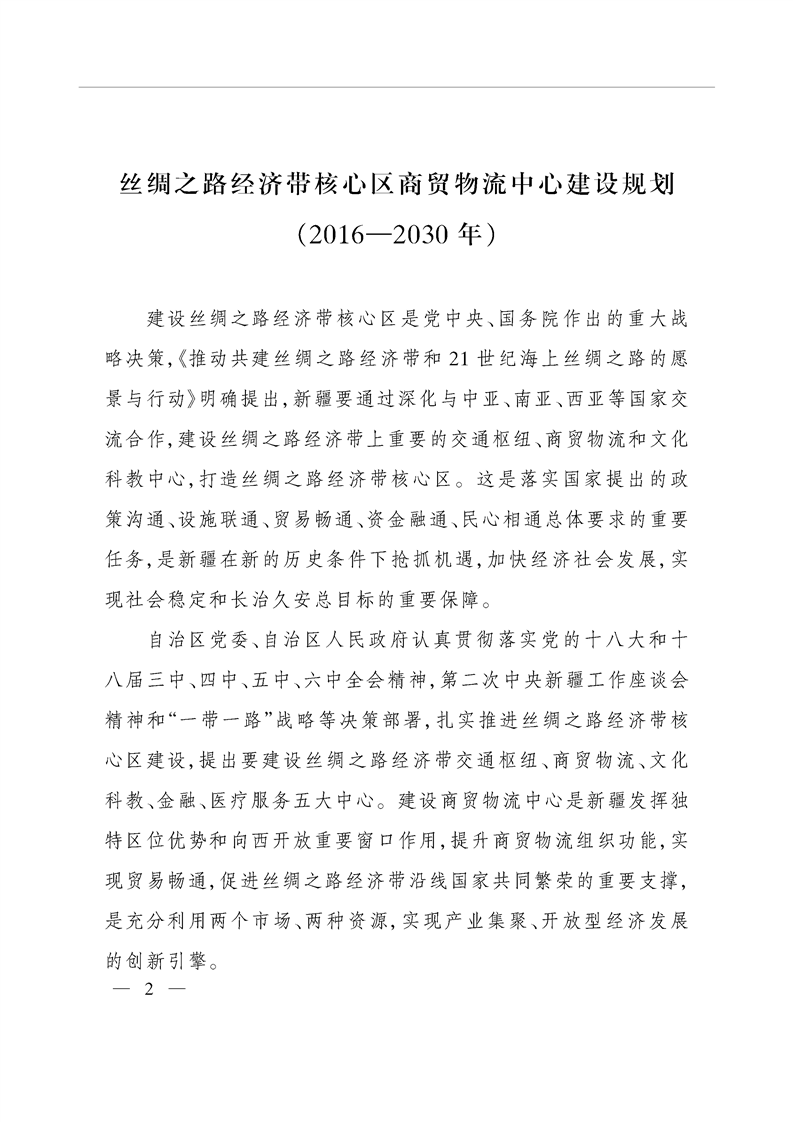 关于印发丝绸之路经济带核心区商贸物流中心建设规划(2016-2030年)的通知