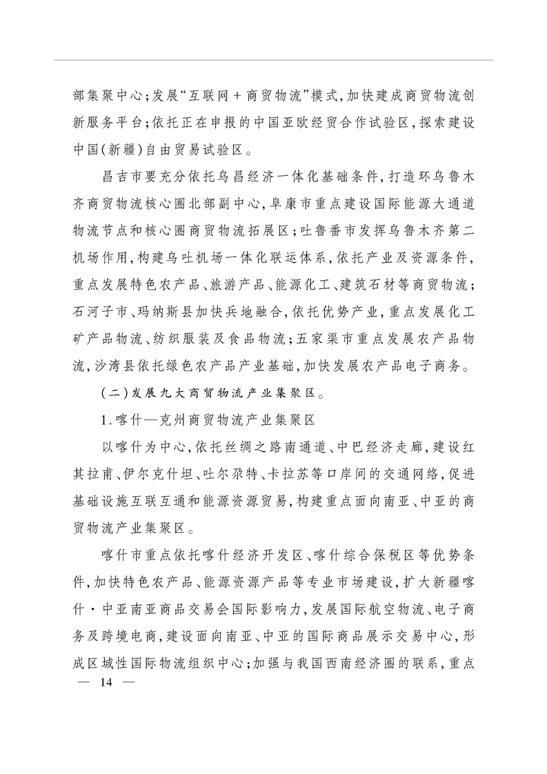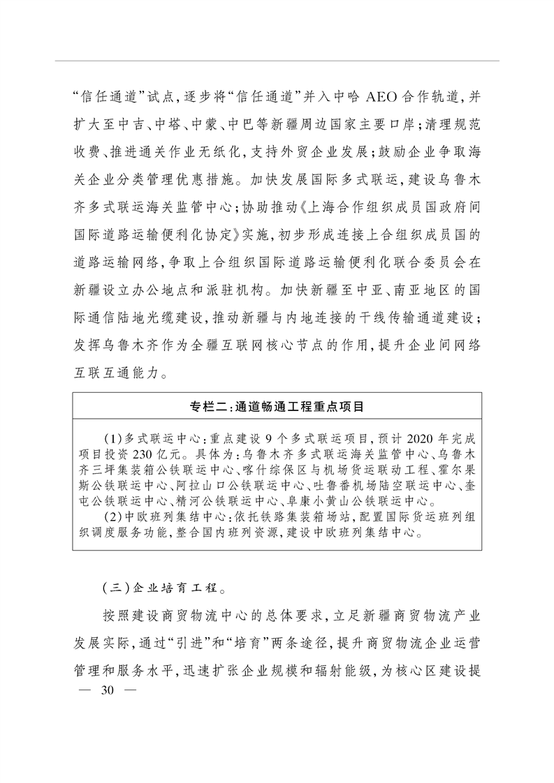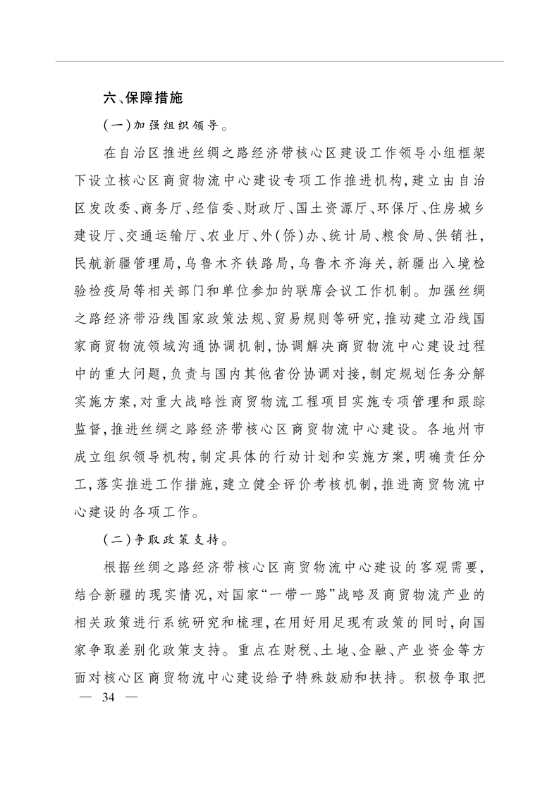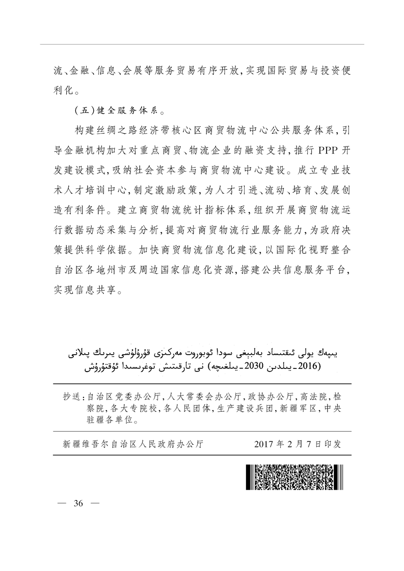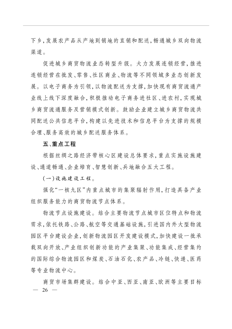 关于印发丝绸之路经济带核心区商贸物流中心建设规划(2016-2030年)的通知
