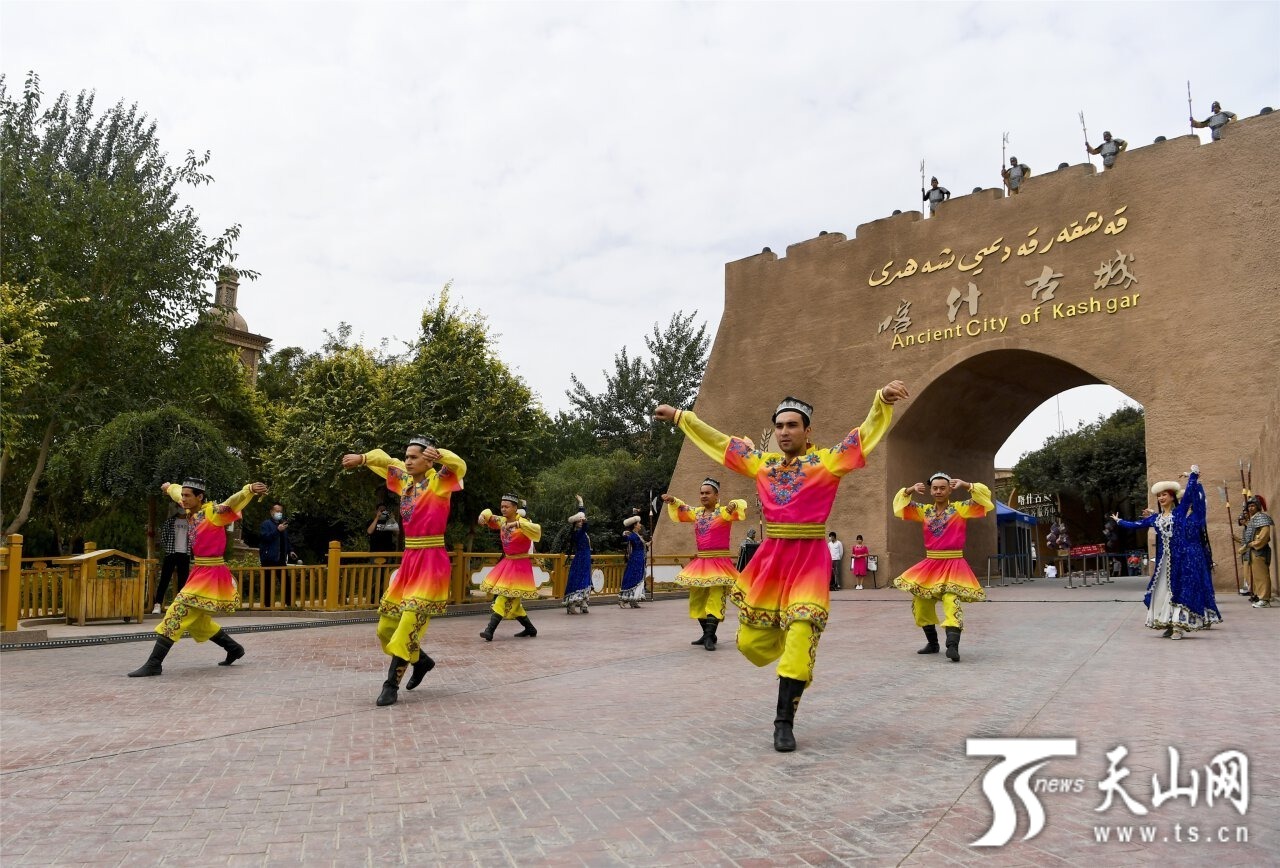 演员在喀什古城开城仪式上表演舞蹈。天山网-新疆日报记者汤永摄