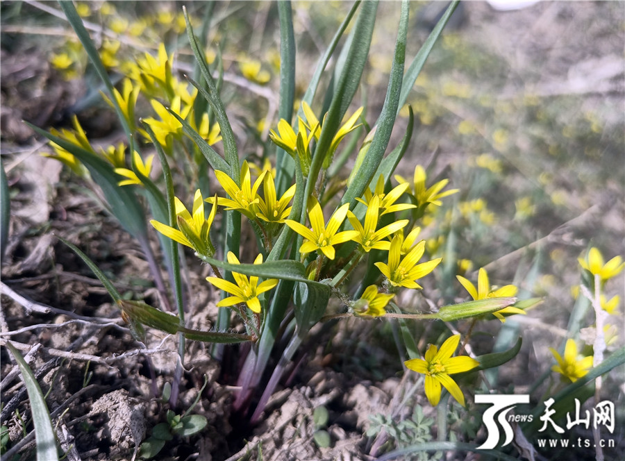4月8日,乌鲁木齐市水塔山公园绽放的顶冰花。记者秦梅花摄