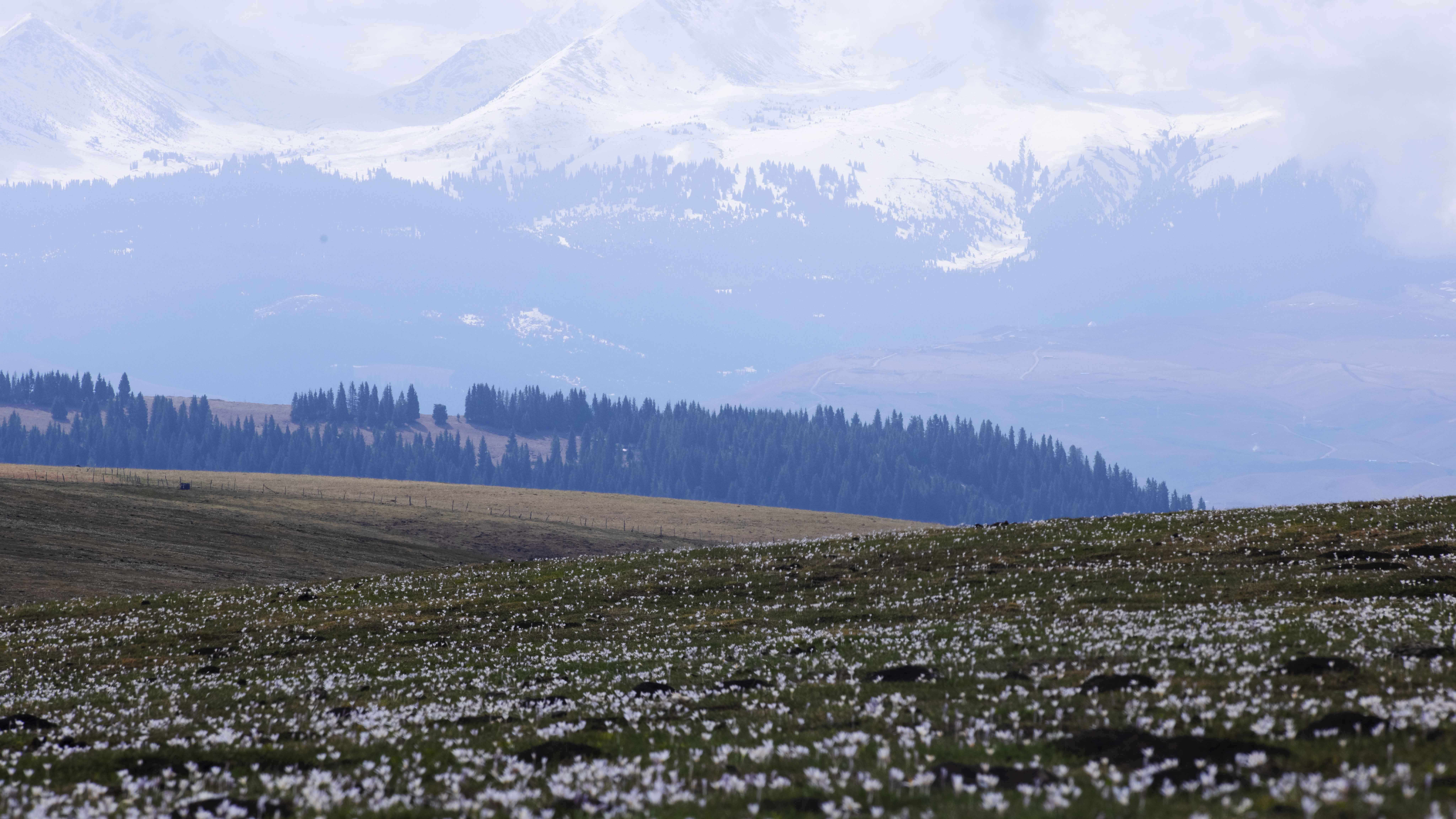 4月中旬,新疆伊犁哈萨克自治州特克斯县喀拉峻草原上的野百合悄然绽放,白色、淡黄色的小花星星点点,娇嫩可人,漫山遍野的花朵,把沉睡了一个冬天的山野装扮得分外美丽。野百合又名顶冰花,每年4月中旬至5月初,身处天山之巅的顶冰花凌寒而开。