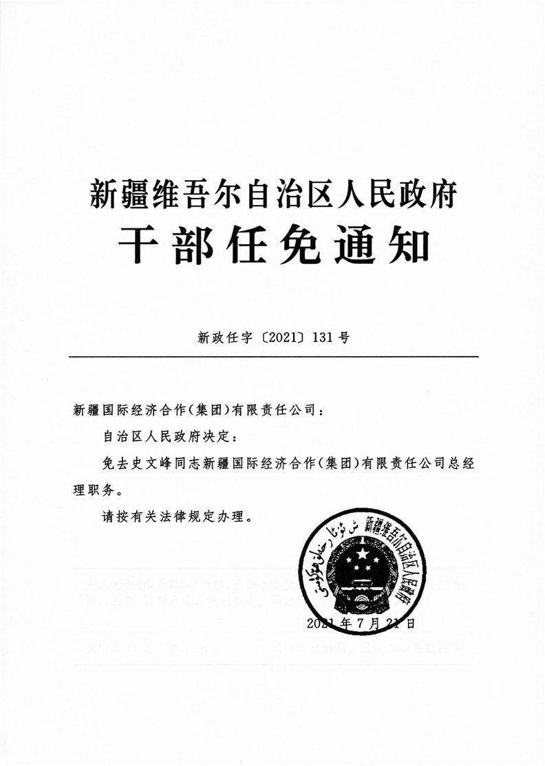 关于史文峰同志职务的任免通知