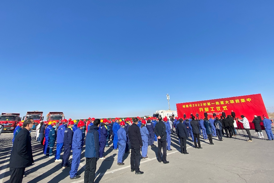 新华网乌鲁木齐2月28日电(盛元)28日,新疆哈密市举行2022年首批重大项目集中开复工仪式。涉及工业、能源资源、综合交通、商贸流通、城乡建设等多个领域,总投资889亿元的60个重大项目开复工,今年计划完成投资217亿元。