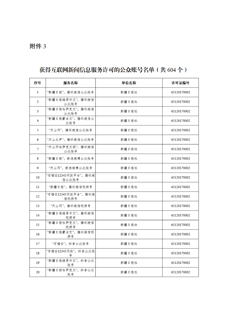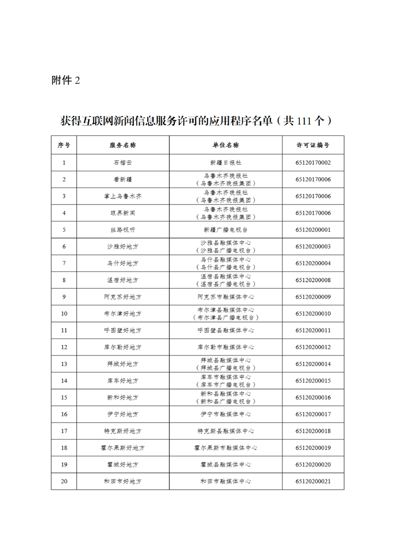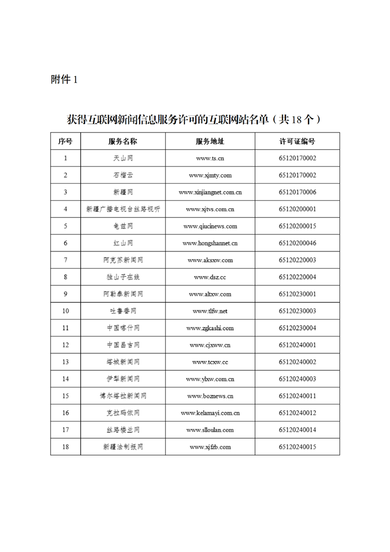 新疆维吾尔自治区互联网新闻信息服务许可信息
