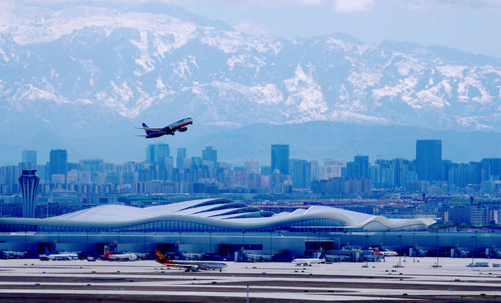 飞机从乌鲁木齐天山国际机场起飞(2025年4月17日摄)。新华社发(王志清 摄)