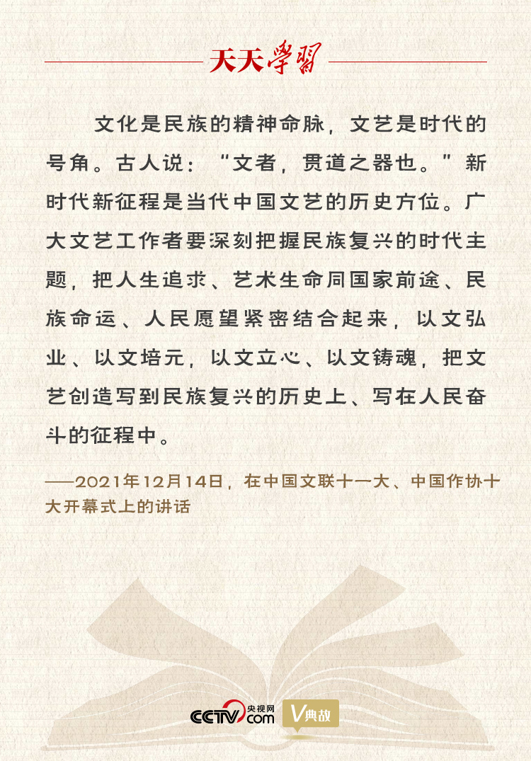 文化兴则国家兴,文化强则民族强。在中国文联十一大、中国作协十大开幕式上,习近平总书记深刻阐明了文艺在全面建设社会主义现代化国家、实现中华民族伟大复兴中国梦中的重要地位和作用,为新时代中国文艺指明了前进方向。