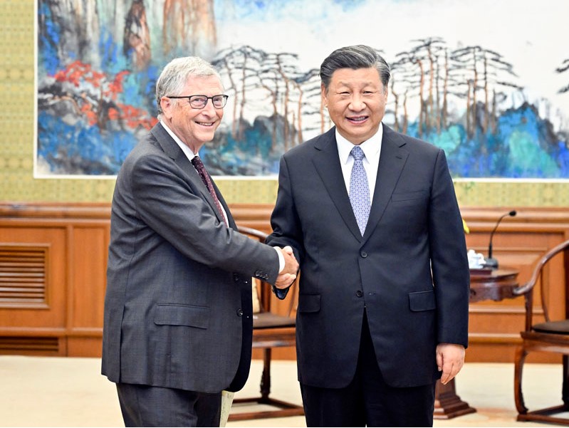 习近平对盖茨及其基金会长期致力于促进全球减贫、卫生、发展及公益慈善事业表示赞赏。习近平强调,当前,世界百年未有之大变局加速演进,我提出全球发展倡议、全球安全倡议、全球文明倡议,目的是为解决全球性挑战提供中国方案。中国首先专注于解决好自己的问题。中国作为一个拥有14亿多人口的大国,保持长期稳定和持续发展,就是对世界和平、稳定、繁荣的重大贡献。我们要巩固脱贫攻坚成果,实现乡村振兴,不断提高农村卫生健康水平。