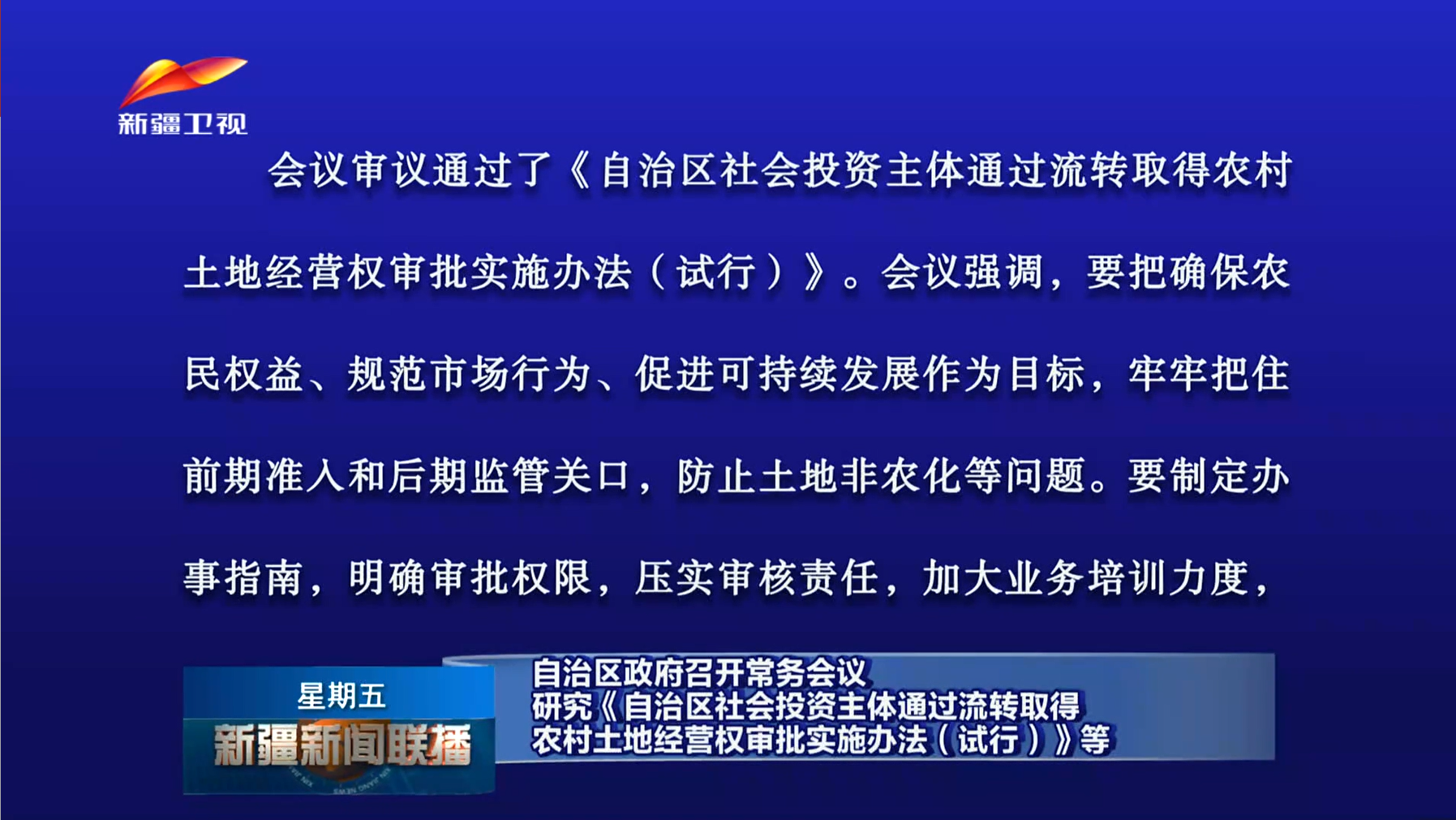 自治区政府召开常务会议 研究《自治区社会投资主体通过流转取得农村土地经营...