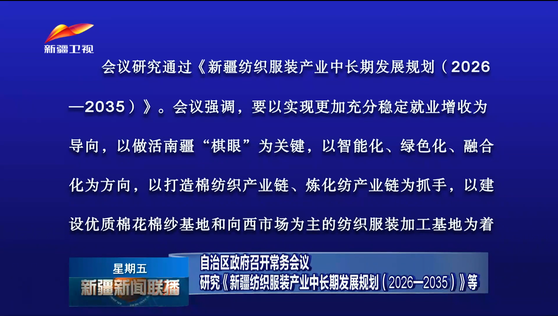 自治区政府召开常务会议 研究《新疆纺织服装产业中长期发展规划(2026—203...