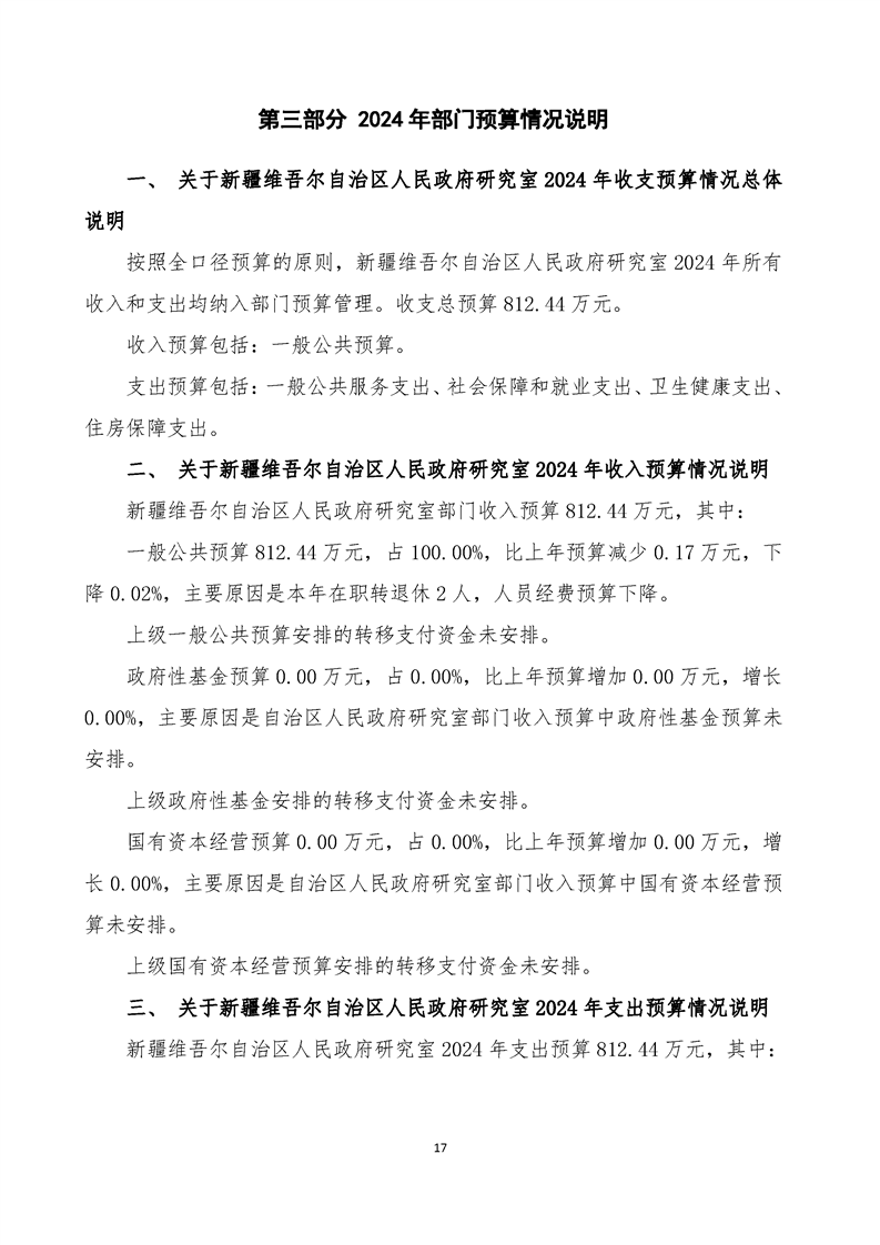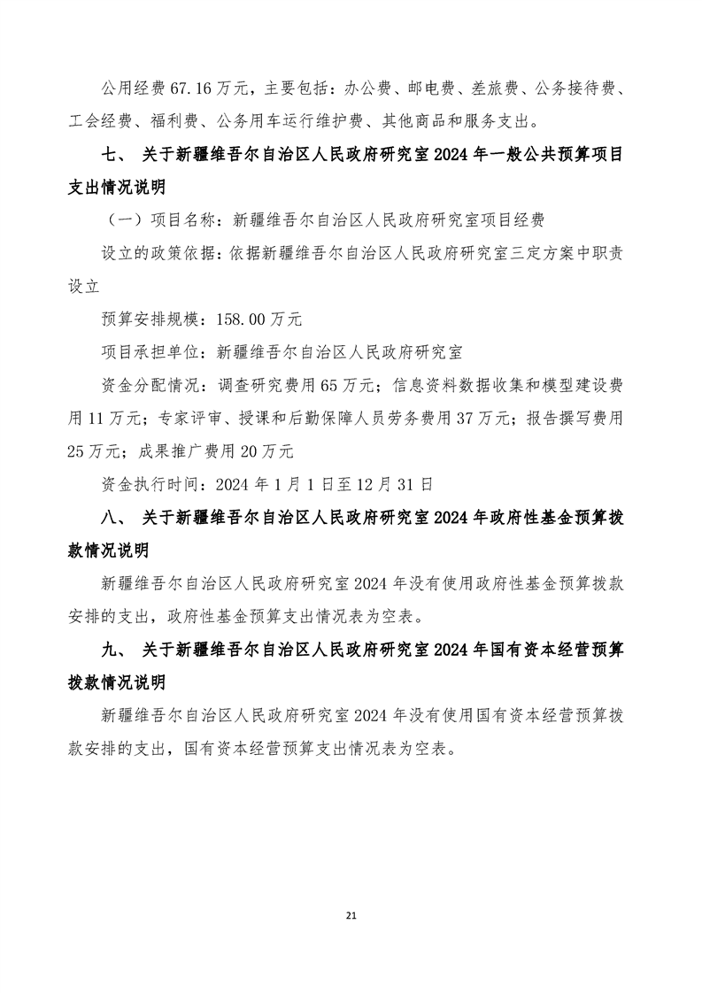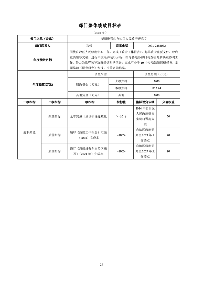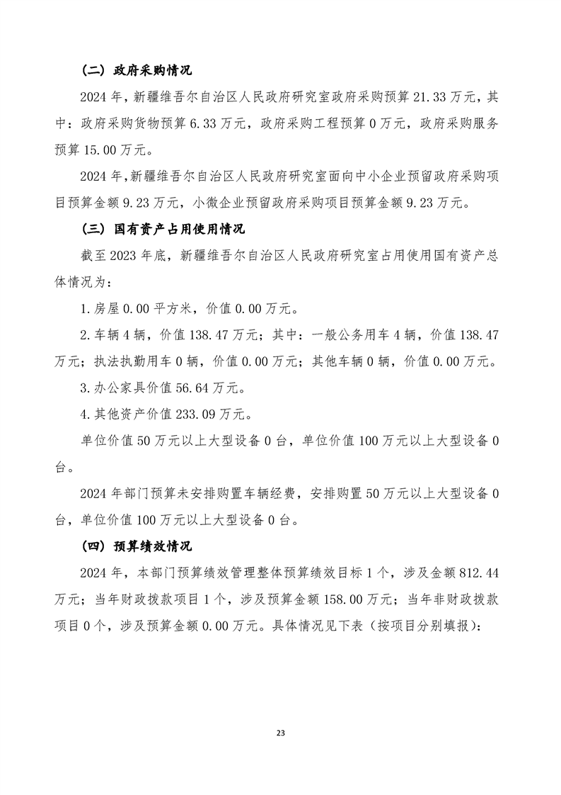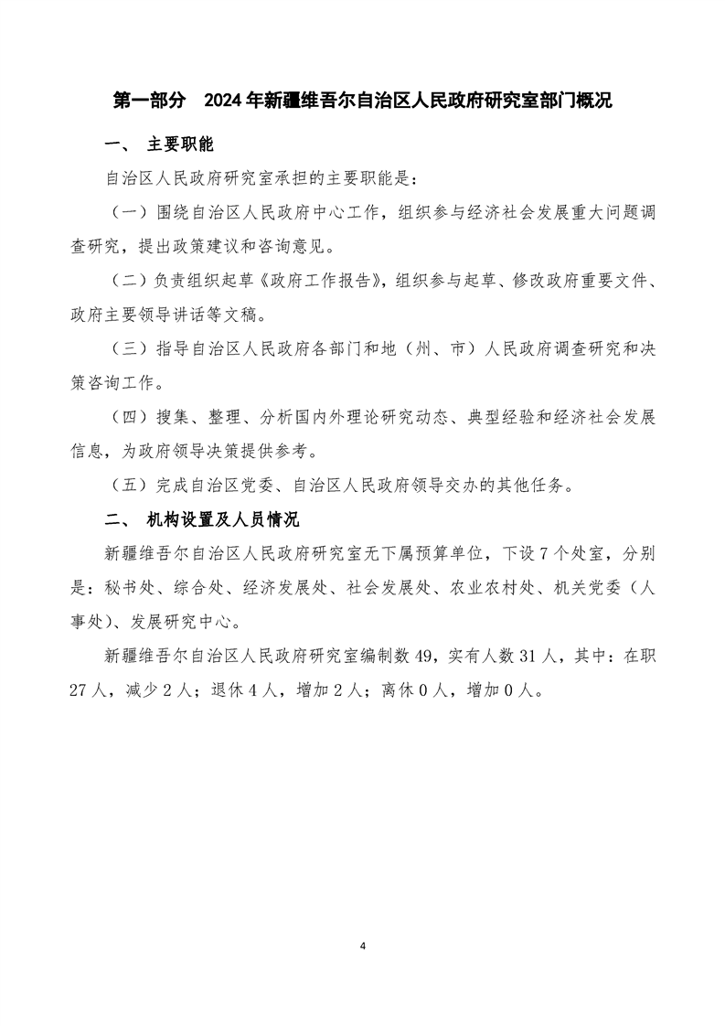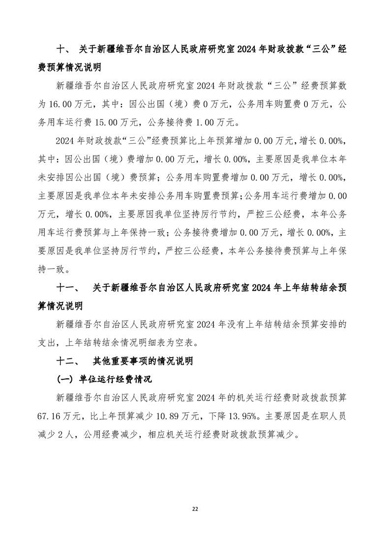 新疆维吾尔自治区人民政府研究室2024年部门预算公开