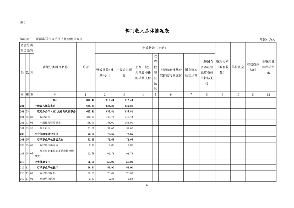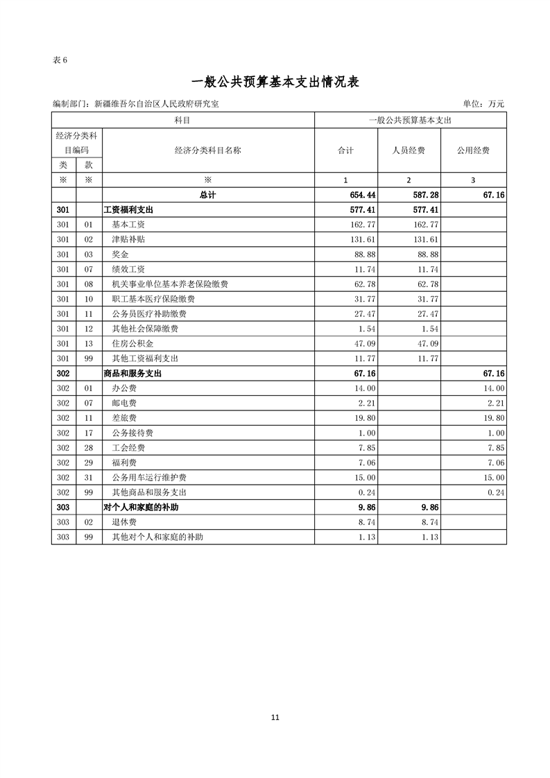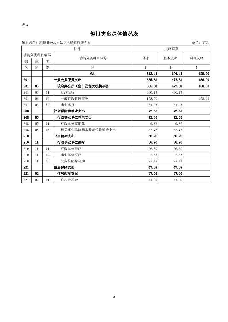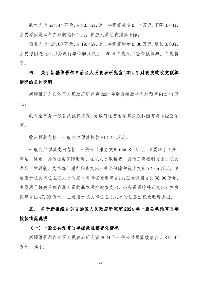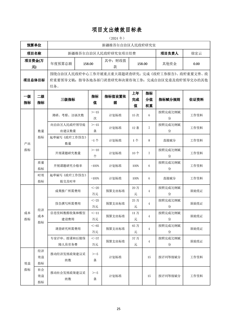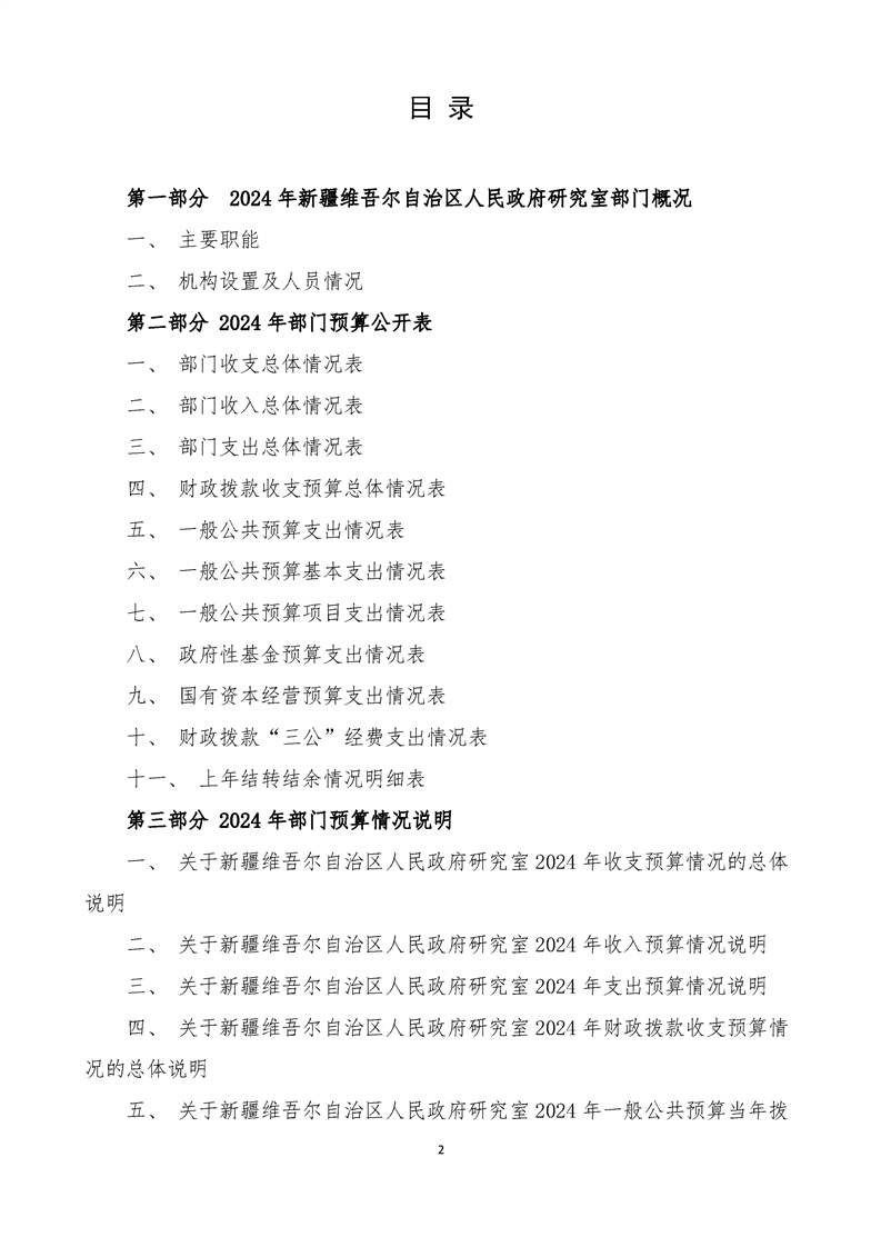 新疆维吾尔自治区人民政府研究室2024年部门预算公开