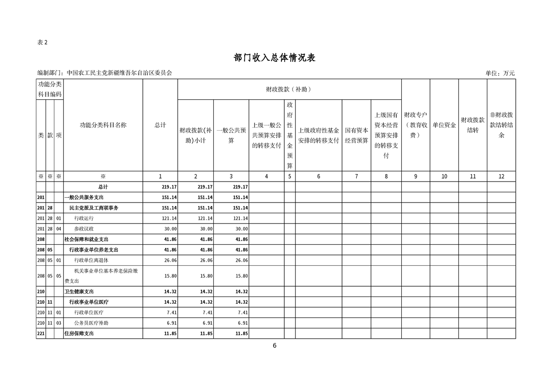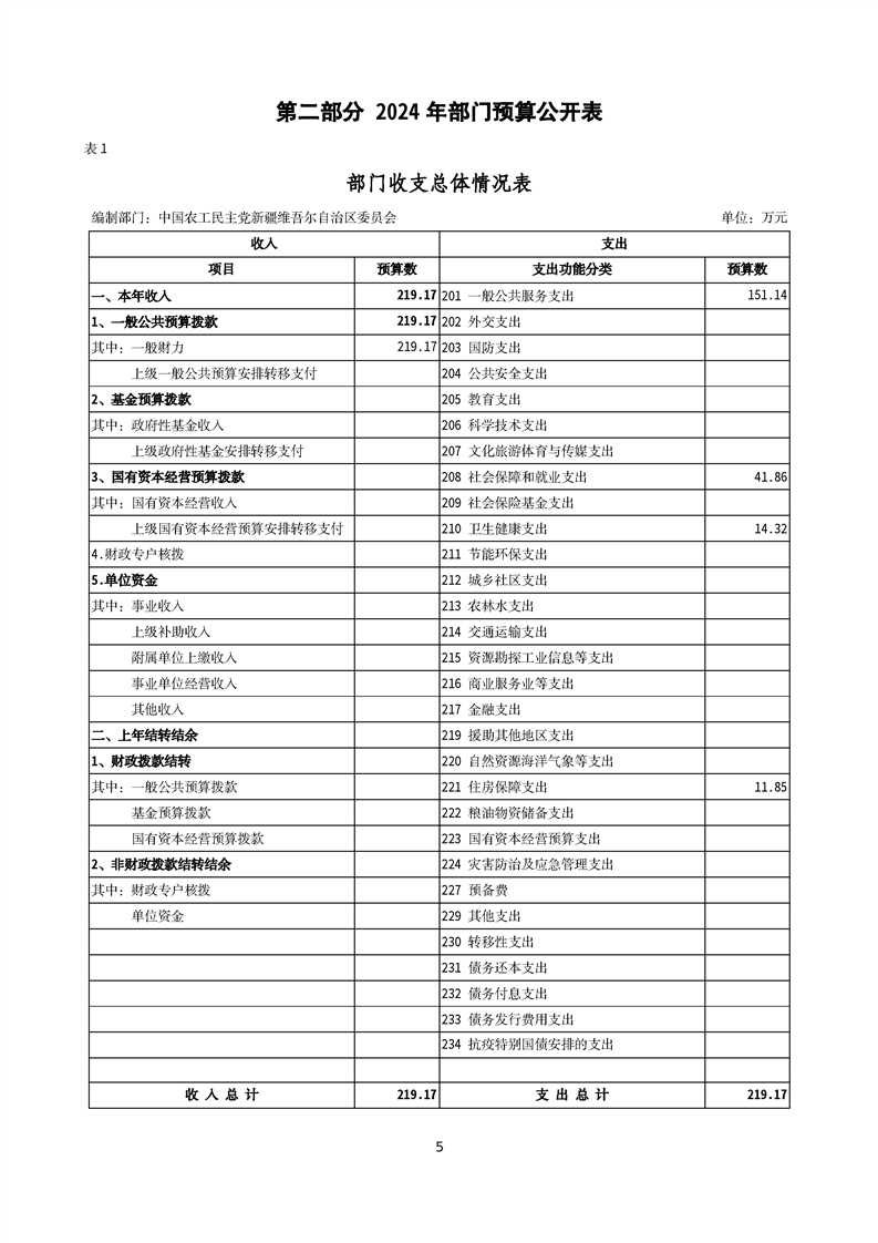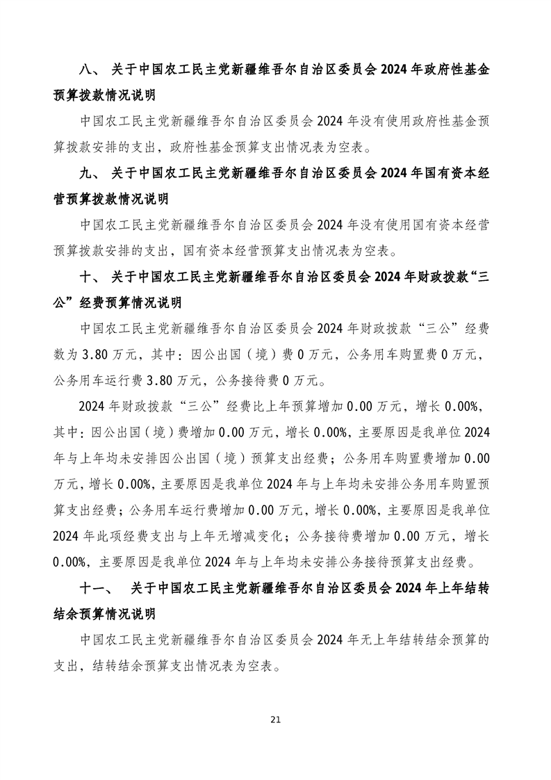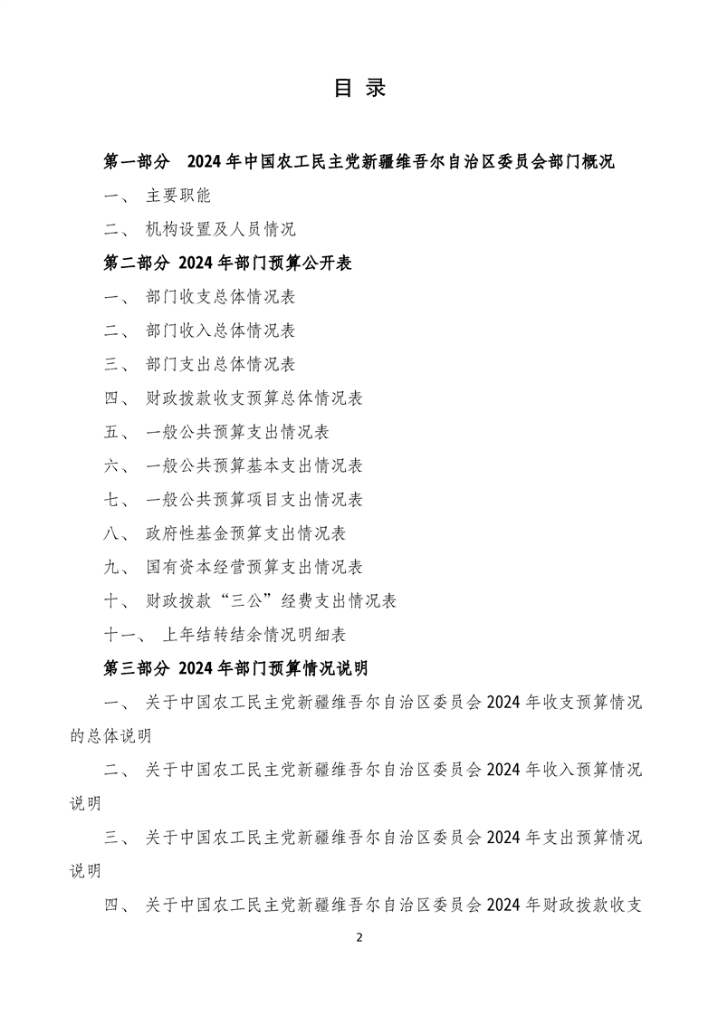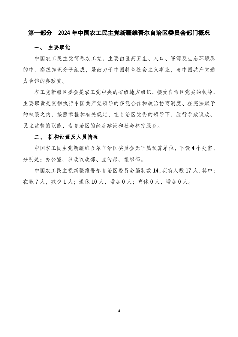 中国农工民主党新疆维吾尔自治区委员会2024年部门预算公开