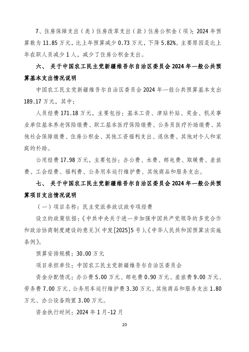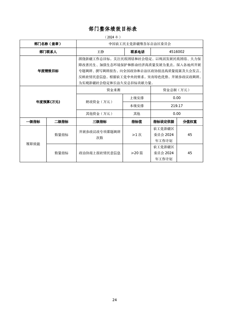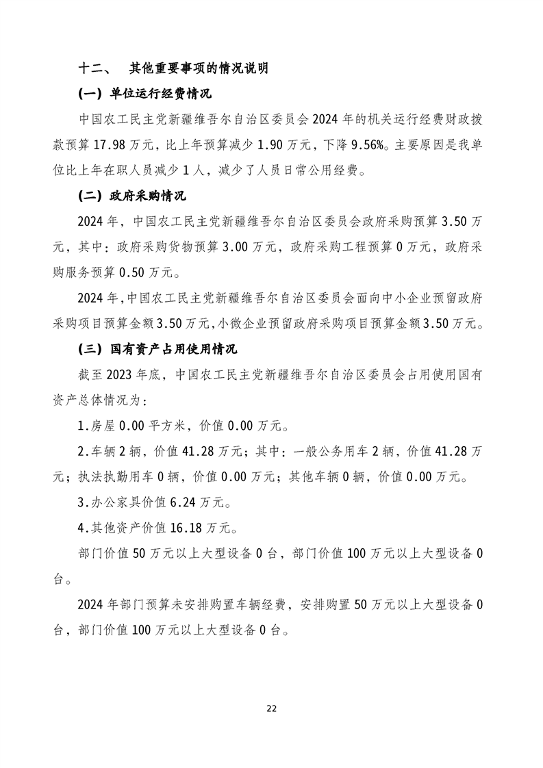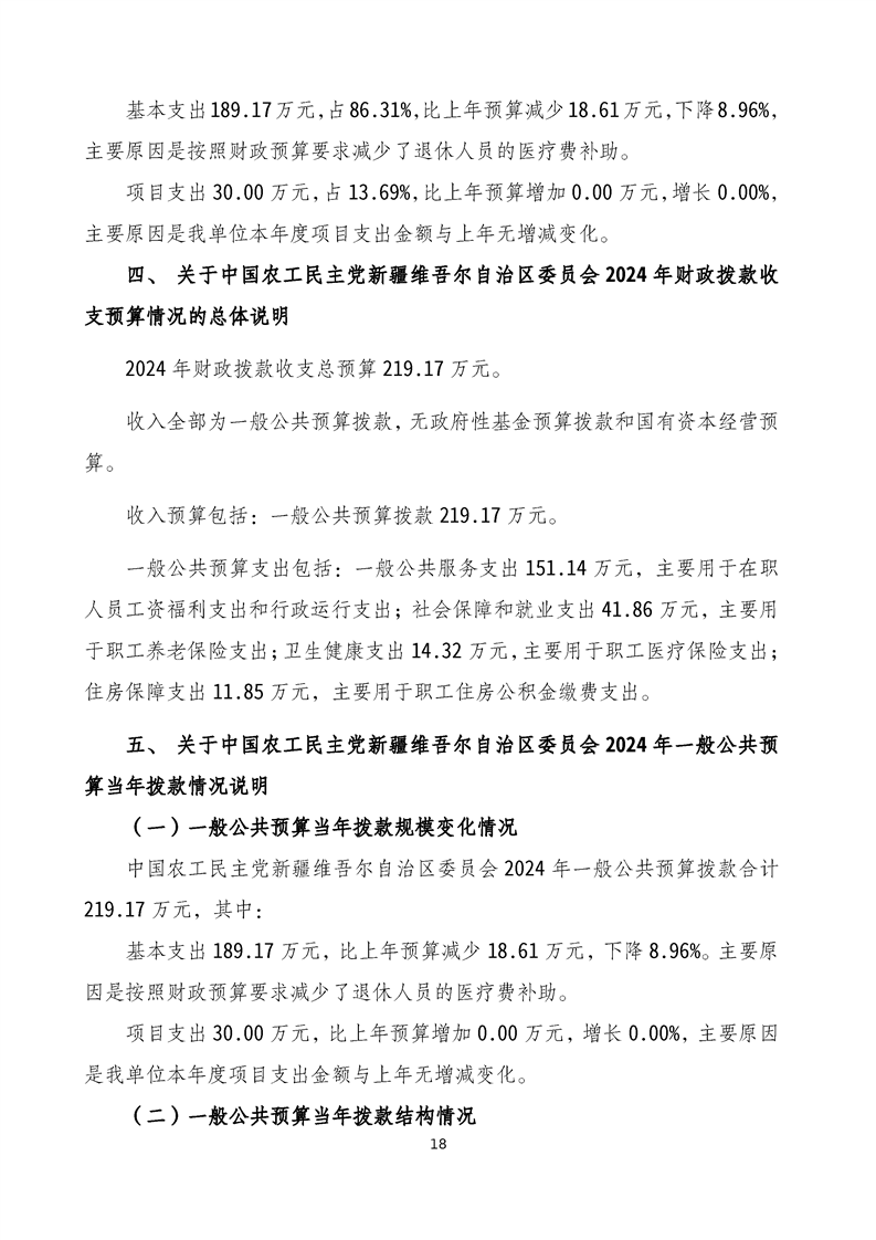 中国农工民主党新疆维吾尔自治区委员会2024年部门预算公开