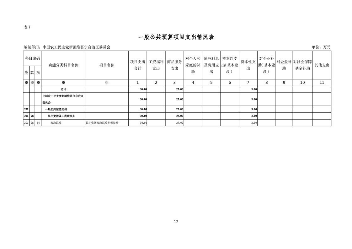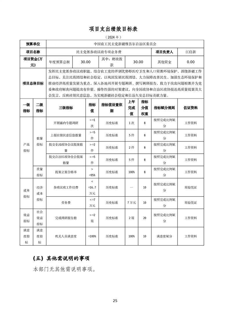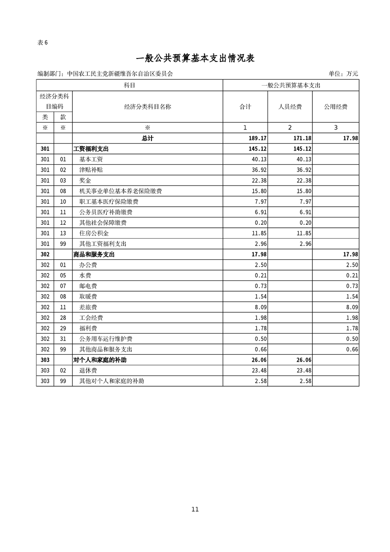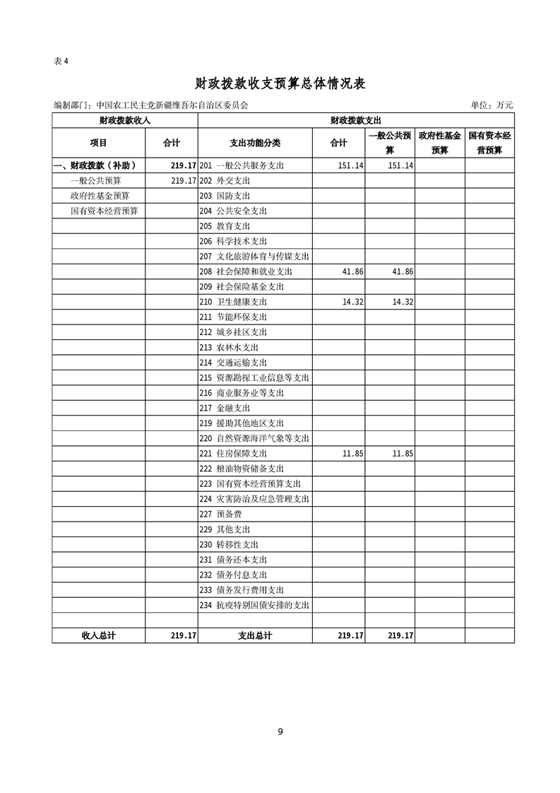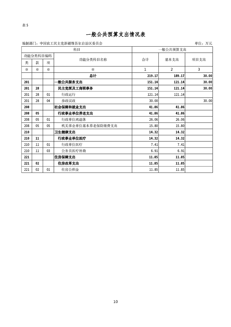 中国农工民主党新疆维吾尔自治区委员会2024年部门预算公开
